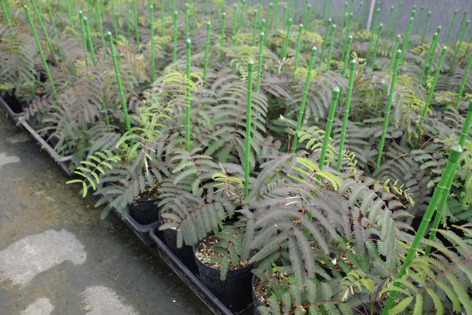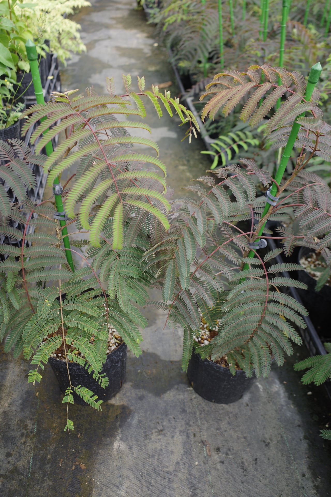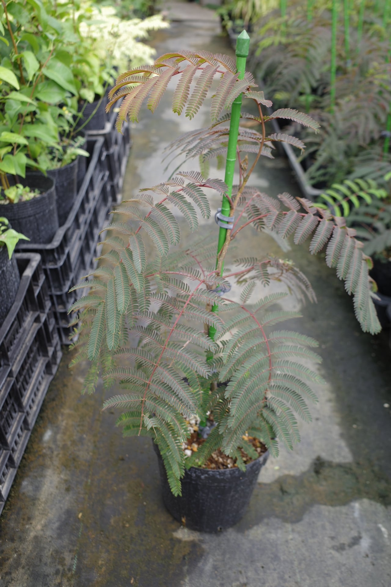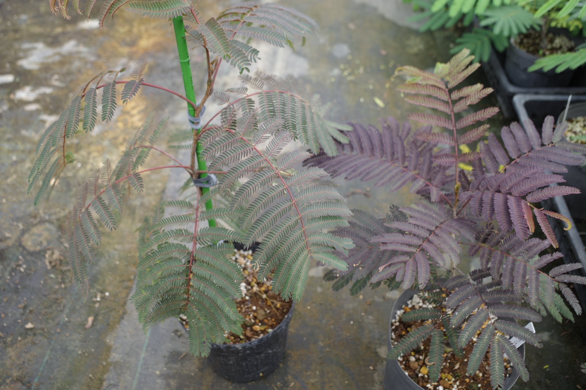 ネムノキの紫はの品種‘サマーチョコレート’とシダレネムノキを交配してアメリカで作出された紫葉の枝垂れるネムノキです。