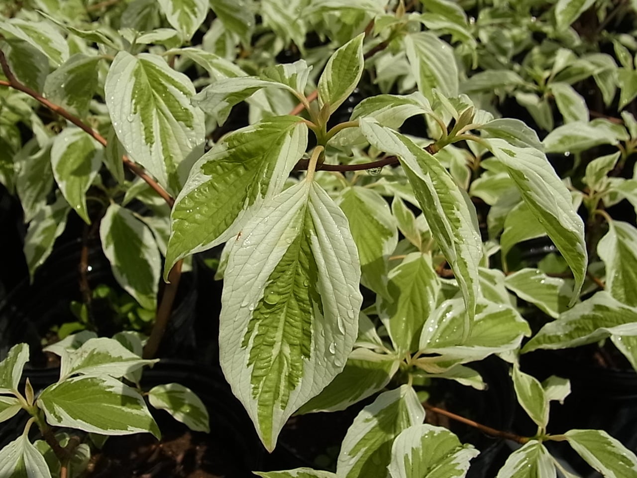 日本で作出されて世界に広がった人気のミズキの斑入り品種です。