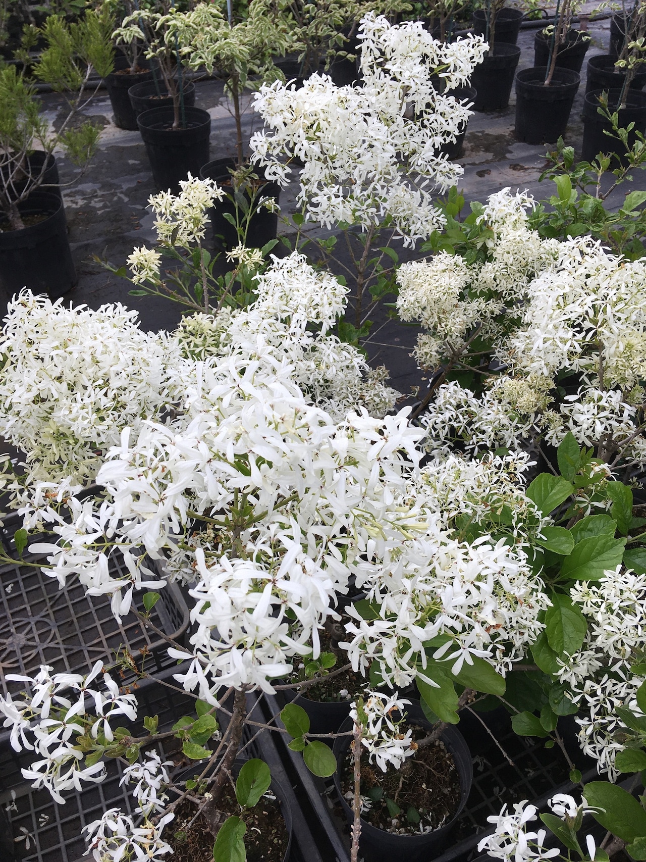 対馬産のヒトツバタゴです。ヒトツバタゴは日本では愛知・岐阜と対馬に隔離分布しています。学名上は分けられていませんが、対馬産のヒトツバタゴは花弁の幅が広く、樹形がコンパクトになる特徴があります。開花した時は見事です!